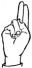 На ћирилици написано ОГЊЕН РЕСКОВИЋ састоји се из 13 слова [?]. Исписано ћириличном једноручном азбуком за глувонеме: